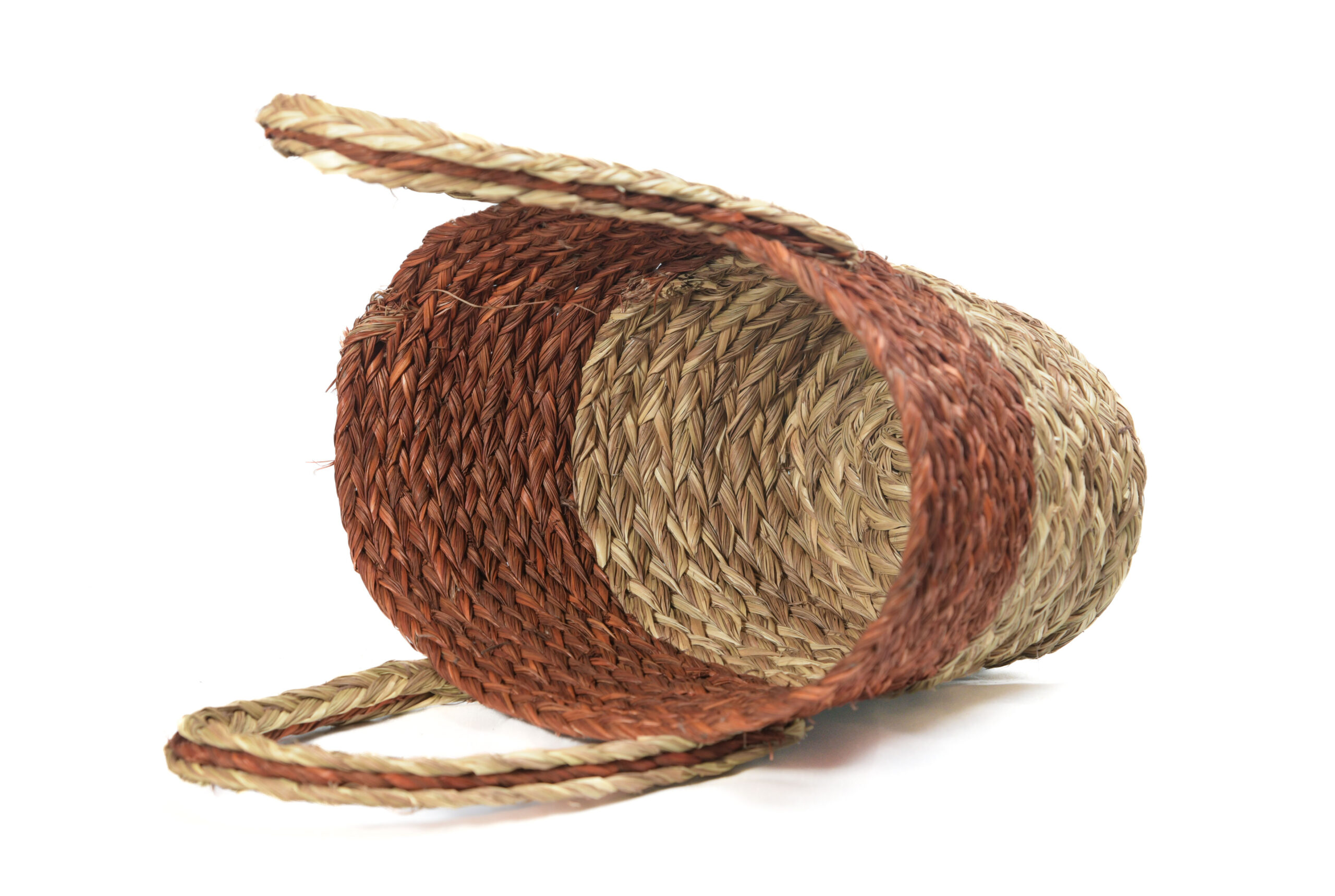 this is a bag for carring puja things to the temple. one can carry things as per his/her requirements made up of Sabai grass, A grass which known for its strongness and durability from the time of British era which abundantly found in the forest fringes of the Chota Nagpur Plateau in West Bengal and Odisha (in a wide part of Mayurbhanj district). After Harvesting the grass it goes under natural dyeing process and the traditional rope was made from this. By the passing years our skillful craftsmen are not just product bound in only rope making. Using their creativity and social requirements they made different usefull items for home .